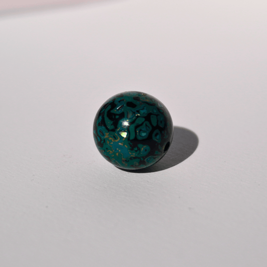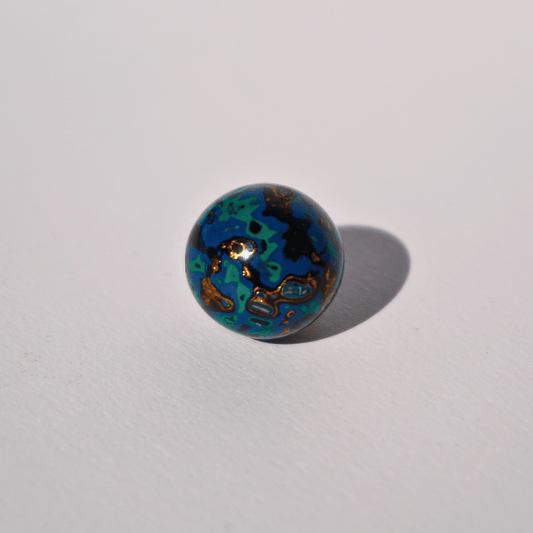 Indigo Gold Ritual Bead – Deep Blue Botanical Resin Bead with Gold Accent